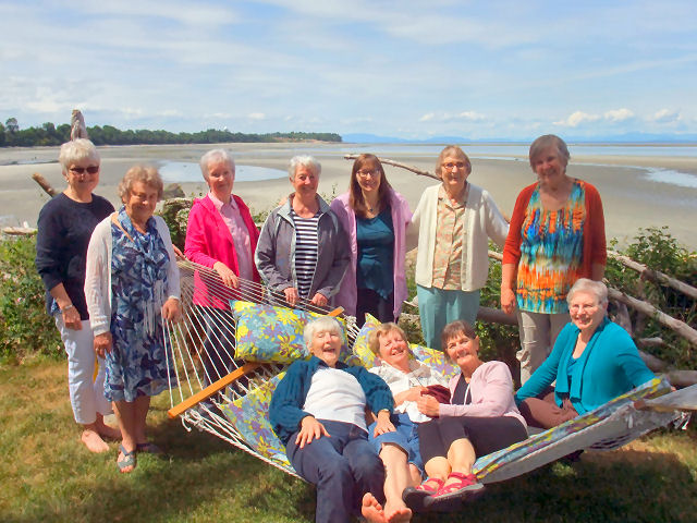 I do miss the feeling that Lynn is not here. My friendship began when moving here and making swags at her home on Headquarters Road. Since then there have been many volunteer hours at the Sid Williams, walks through McDonald Park down to the ocean, her enjoyment at John's band performances here and at Anderton Gardens and continuing with swag making at my home. She loved the comforting music of the Threshold Choir and eagerly attended rehearsals. We enjoyed times together sitting on her sun deck chatting and knitting in later years, and so much more. I'm so glad that she was able to be in her own home until the short hospital stay.
